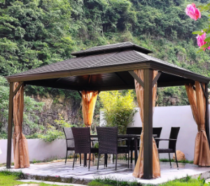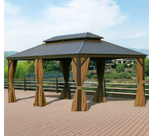 Outdoor Living Hardtop Gazebo Wooden-Coated Aluminum Frame Canopy Patio Deck Furniture Double Roof Galvanized Steel for Lawn